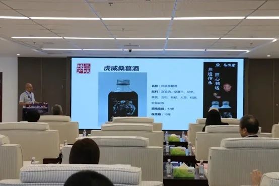 展商推介會上來自重慶坤承農(nóng)業(yè)科技有限公司的負責人對虎威桑葚酒進行推介
