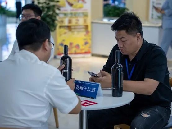 精準商戶對接會上參展商介紹花楸干紅酒進行進行交流洽談